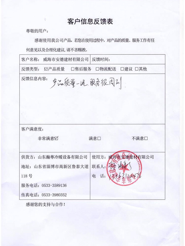 • 山東瀚尊冷暖設備有限公司坐落在美麗的齊國古都---淄博,是一家以換熱(冷凝)產品研發、生產、營銷為一體的企業;自2008年以來,通過與中外知名熱力設備制造商合作以及自主探索和創新,于2010年成功研制生產出了公司第一臺螺旋纏繞管式換熱器;同時,公司依托自身強大的技術力量和研發能力,于2016年成功研制生產無死角無菌級雙管板式換熱器,近年來,公司努力走在中國換熱器行業的前列,致力于創造民族品牌,為用戶提供專業技術支持與服務......